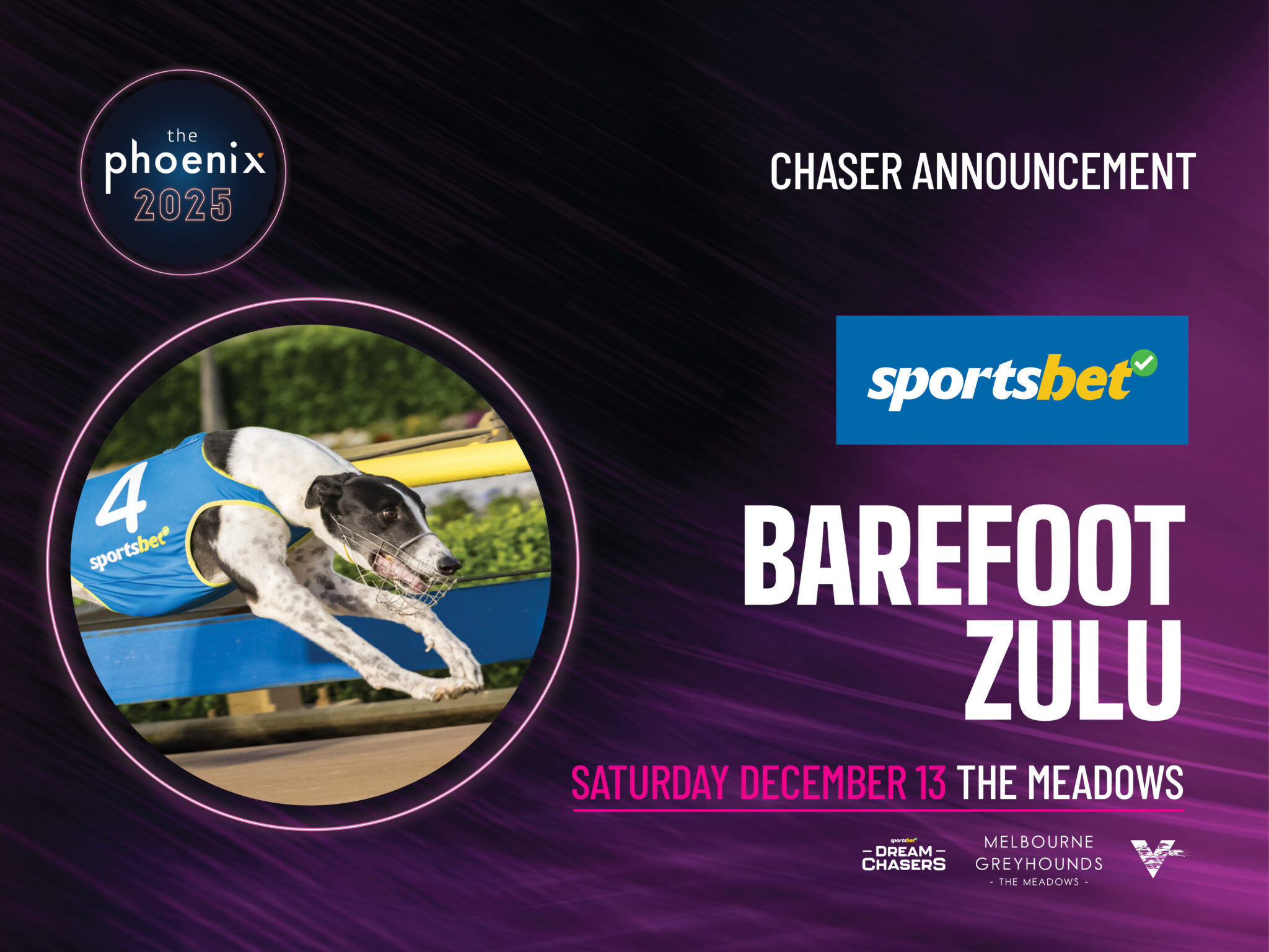 Barefoot Zulu is the second greyhound to be locked in for The Phoenix after Metro Jetting secured NSW star Cumbria Jack recently.
