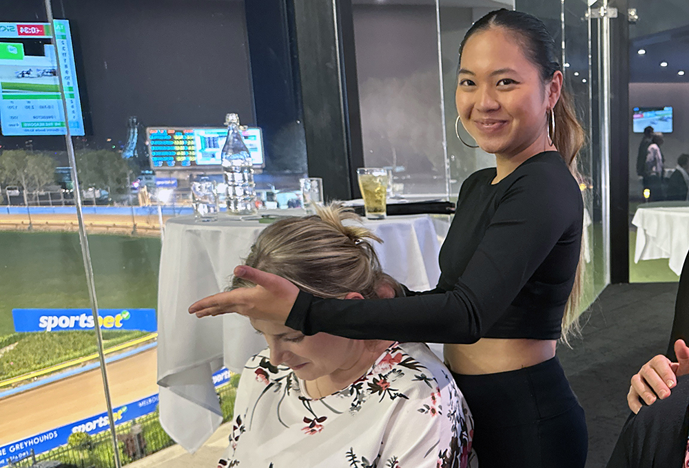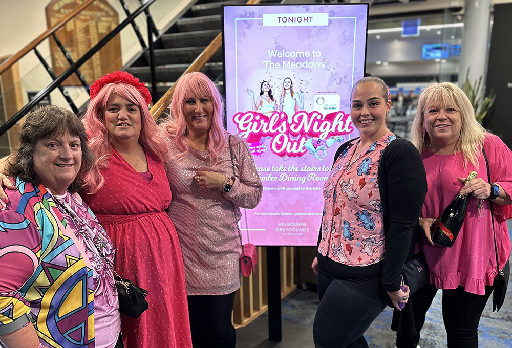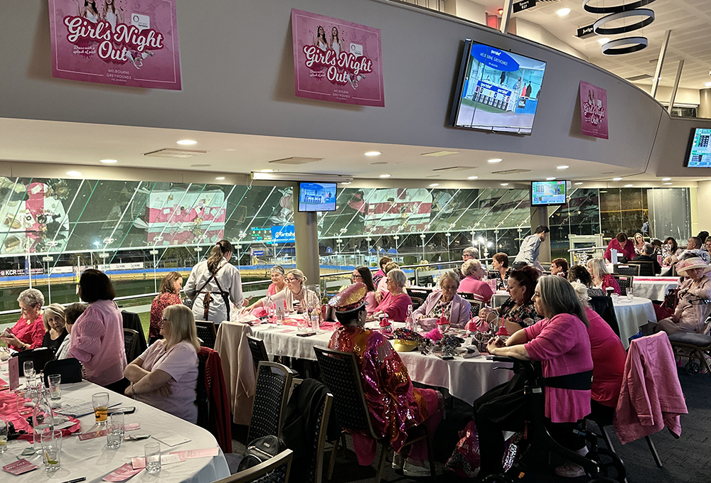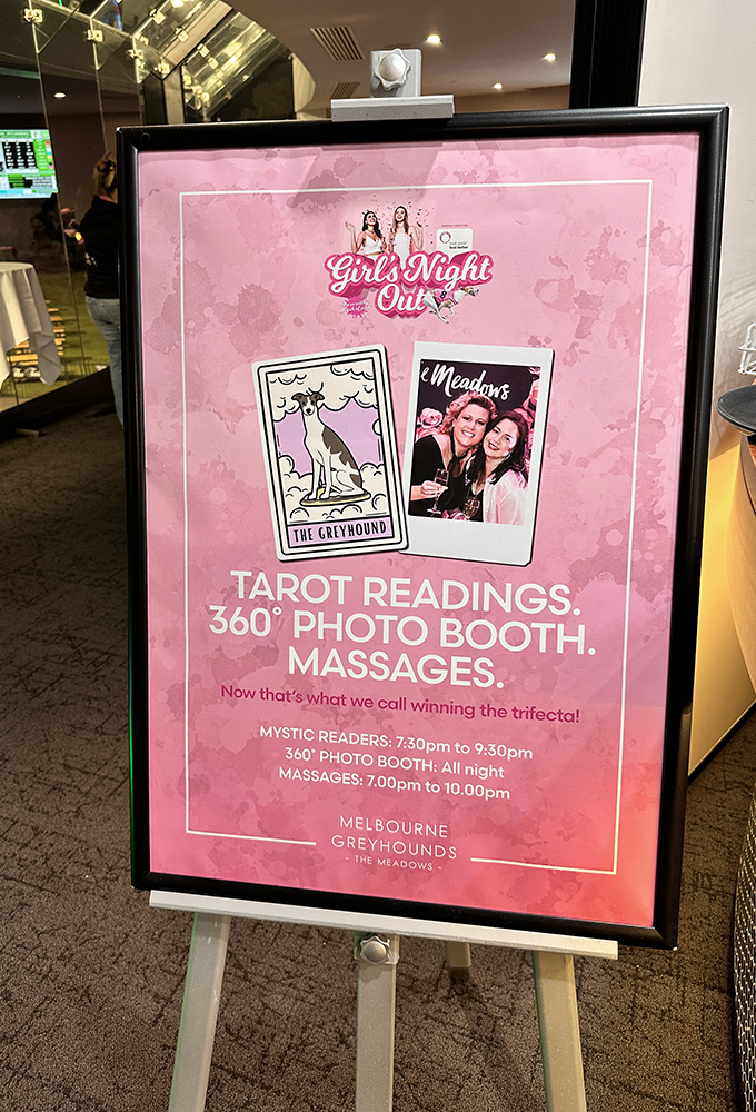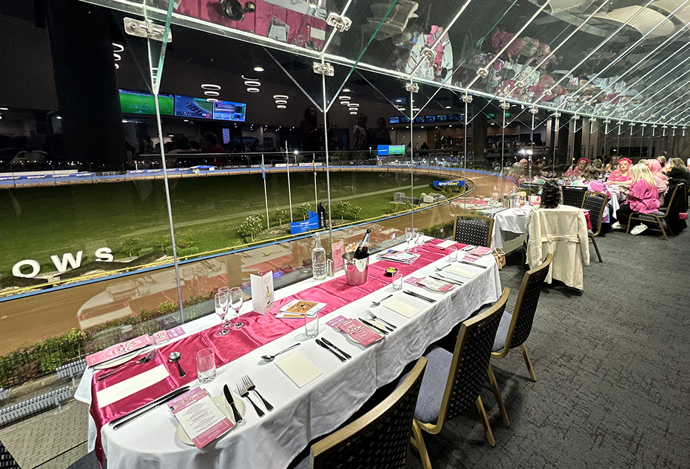 It was agreed that every time the dog wearing the pink number 8 rug saluted the MGRA would donate $500 to Look Good Feel Better. Although only one ‘pink’ dog was able to get the chocolates in the twelve race card, the shrills of delight that erupted in the dining room was a spectacular sight to behold! Along with special compere Molly Haines, who kept the crowd well versed on the racing component and all the FREE activities on hand, it was hugs all around when Swindled charged home in the aptly name race 6 – ‘Girl’s Night Out’