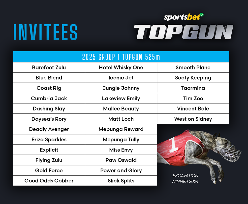 The Melbourne Greyhound Racing Association (MGRA) has sent out invitations to nominate for this year’s Group 1 Sportsbet Topgun & Topgun Stayers events to be held at The Meadows on Saturday night 8 November 2025.