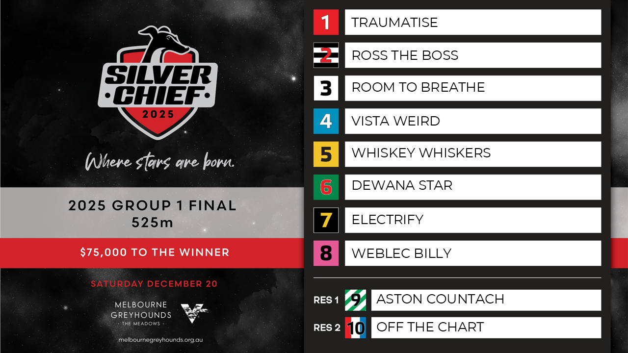 On Saturday night at The Meadows, Electrify will jump from box seven in the Group 1 Silver Chief final.